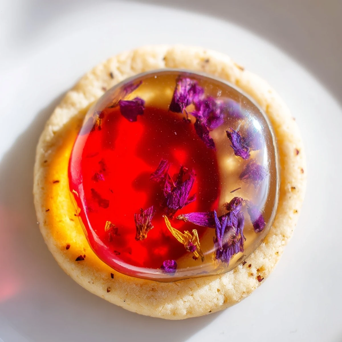 These delicate Earl Grey infused cookies feature a stunning stained glass effect created by crushed vegan hard candies melted in the center. The aromatic dough combines gluten-free flour blends with finely ground Earl Grey tea leaves, resulting in a subtly fragrant base that pairs beautifully with the translucent candy windows. Edible flowers like rose petals, violets, and lavender are pressed into the melted candy, creating an enchanting decorative effect that makes each cookie unique.