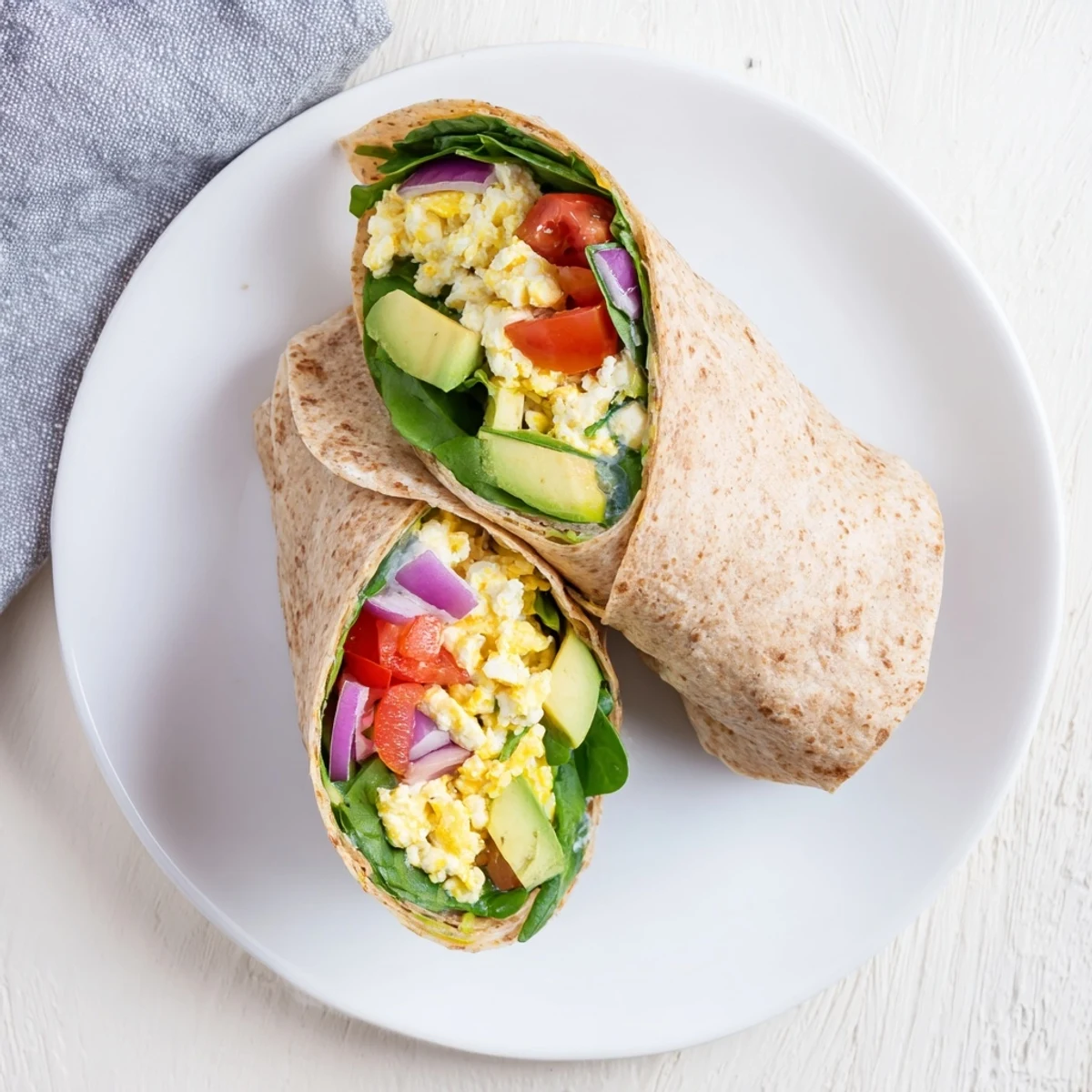 This wholesome breakfast wrap combines protein-packed cottage cheese and scrambled eggs with creamy avocado, fresh tomatoes, red onion, and baby spinach. Whole wheat tortillas hold everything together for a portable, satisfying morning meal that comes together in just 15 minutes.