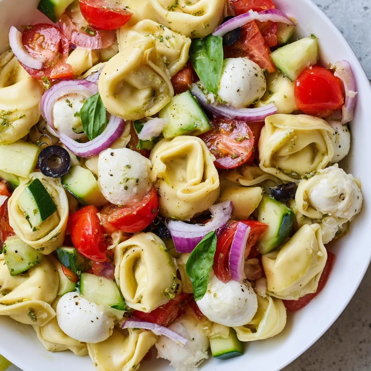 Rinse cooked tortellini thoroughly under cold water to remove excess starch and stop the cooking process. Toss immediately with a tablespoon of olive oil before adding to the salad. This coating prevents sticking and keeps each piece separate.