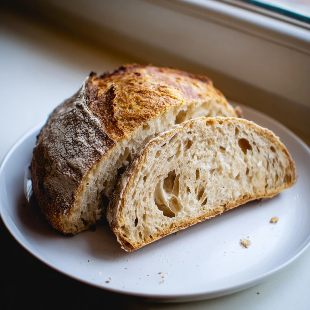 You'll perform simple stretch-and-fold techniques during bulk fermentation, followed by shaping and an optional overnight cold proof for enhanced sour notes. Baking in a preheated Dutch oven creates the professional-level steam environment needed for exceptional oven spring and that coveted crispy crust. The result is a stunning large loaf that yields 10-12 generous slices perfect for morning toast, sandwich bases, or accompanying cultured butter and olive oil.